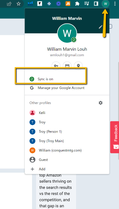 You must enable SYNC to get all the chrome extensions and bookmarks to show on your profile